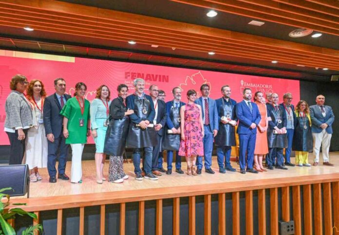 Caballero se ha mostrado orgulloso de entregar a su antecesor en los cargos de presidente de la Diputación y de FENAVIN la distinción de Embajador del Vino. Ha reiterado que es de los que piensan que antes de que él ostentara responsabilidades políticas había mucha vida y mucha política hecha y que los que vienen detrás “somos herederos de las cosas que se hacen bien y asumimos el reto de mejorarlas”.