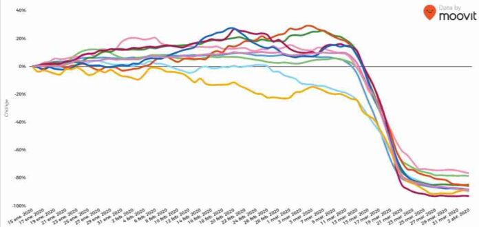 En su estudio, se comparan los descensos producidos en Barcelona, Bilbao, Burgos, Gran Canaria, Granada, Lanzarote, Madrid, Mallorca, Málaga, Sevilla, Tenerife, Valencia, Vigo y Zaragoza. Algo que, según la aplicación, permite concretar de manera bastante gráfica cuándo los ciudadanos se han empezado a confinar efectivamente en casa.