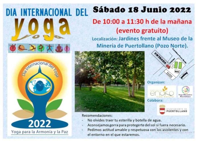 El Día Internacional del Yoga celebrará por octavo año la Asociación Enoko. Será con una sesión en los jardines del Museo de la Minería de Puertollano (Ciudad Real) el próximo sábado, 18 de junio, 10 a 11,30 horas. Y con la colaboración de Yoga Dinámico Puertollano y el Ayuntamiento de Puertollano.