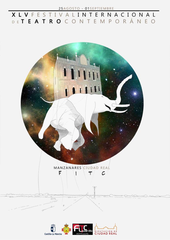 Sobre un gran elefante africano que representa su trayectoria y fortaleza y del que cuelgan unos hilos del que cuelgan las cuerdas de las tramoyas que le permiten volar, aparece el Gran Teatro de Manzanares como símbolo de un escenario que no estático, sino que se mueve por las calles. La Mancha y ese paisaje que envuelve al espectador que va de ruta a Manzanares es el eje real sobre el que subyace otro mundo más onírico: “una burbuja con un cielo estrellado donde ese elefante puede existir sin que le juzguen como este festival donde los artistas que reivindican lo distinto encuentran su hogar”, según palabras de la autora.