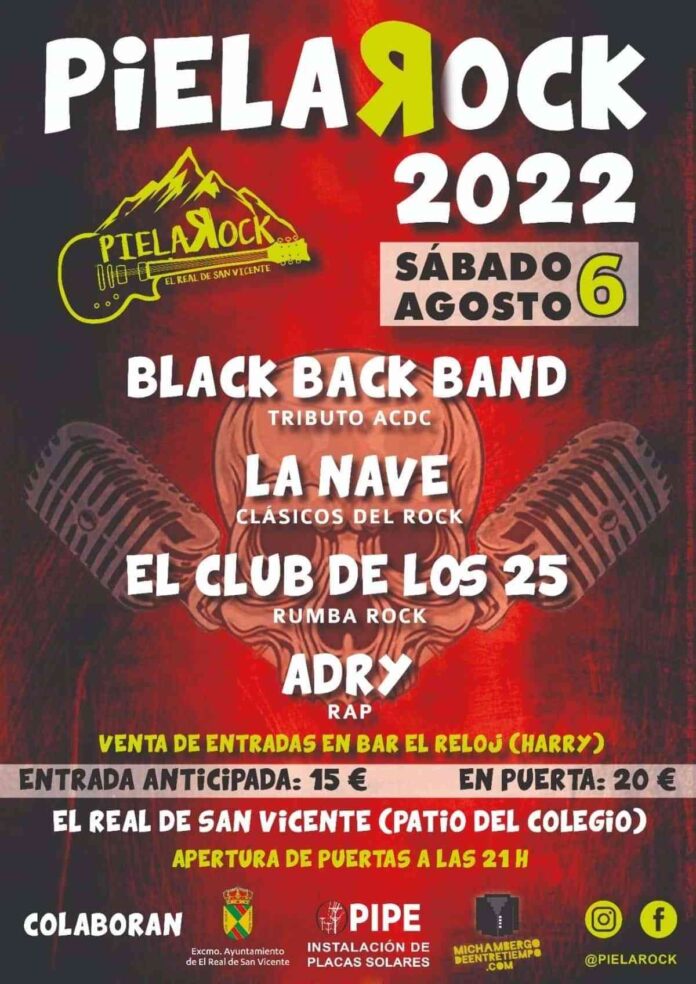 La tercera edición del Festival PielaRock de la localidad toledana de El Real de San Vicente homenajeará a las leyendas del rock AC/DC este sábado, 6 de agosto. El cartel está formado por Black Back Band, que darán buena cuenta de todos los éxitos de la banda de Angus Young, el rapero local Adry, la rumba fusión de El Club de los 25 y los himnos del pop rock de la década de los 80 de la Nave Rock.