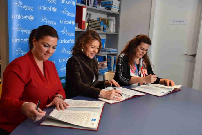 El convenio ha sido rubricado en la sede de UNICEF Comité Castilla-La Mancha en Toledo, entre la Consejera de Bienestar Social, Aurelia Sánchez, la presidenta de la entidad, Asunción Díaz del Río y la presidenta de la Federación de Municipios y Provincias, María Teresa Fernández y tiene como objetivo la mejora de las condiciones de vida de los niños, niñas y adolescentes mediante la promoción e implantación de políticas eficaces y sostenibles que garanticen sus derechos, fomentando su participación y teniendo en cuenta su opinión en los temas que les afectan.