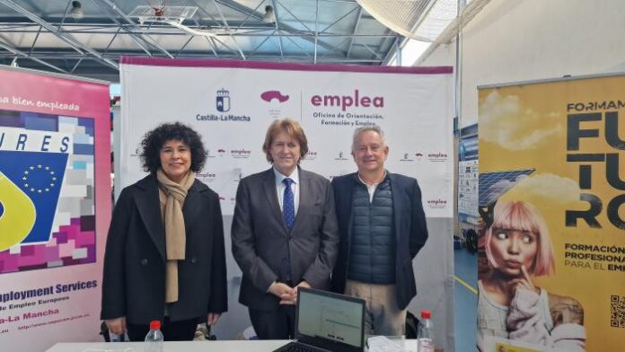 En el stand de la Consejería de Economía, Empresas y Empleo, técnicos de la Oficina Emplea de Ciudad Real ofrecieron información sobre los servicios de orientación profesional y formación para el empleo que brinda el Gobierno regional. Esta iniciativa permite a los futuros trabajadores adquirir especialidades formativas complementarias y realizar reciclaje profesional.
