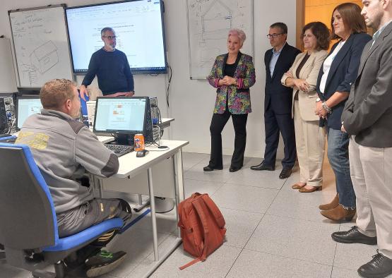 Durante su visita al centro, Rosa María García estuvo acompañada por Susana Blas, delegada de Economía, Empresas y Empleo; María Soledad García, presidenta de CEOE-Cepyme; y Javier Arriola, secretario general de la entidad. La delegada conoció las instalaciones y se detuvo en las aulas donde se imparten los cursos de ‘Personal shopper en comercio’ y ‘Código técnico de la edificación’, ambos financiados por el Gobierno regional.