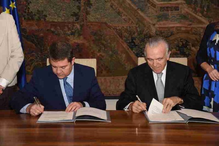 El presidente de Castilla-La Mancha, Emiliano García-Page, y el presidente de la Fundación Bancaria “La Caixa”, Isidro Fainé, firmaron este jueves, en el toledano Palacio de Fuensalida, sede de la Presidencia regional, el acuerdo marco que enmarca la colaboración entre ambas instituciones en materia social, educativa, científica y cultural.