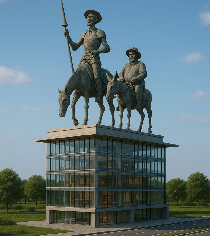No se hará el tal monumento, pero de hacerse no hay más que dos pueblos dignos de tal emplazamiento: El Toboso, por ser patria de Dulcinea, esa ideal musa de Don Quijote, o Esquivias, la auténtica patria del caballero, es decir, del bueno de Alonso Quijano, donde Cervantes se casó y vivió algunos años feliz.