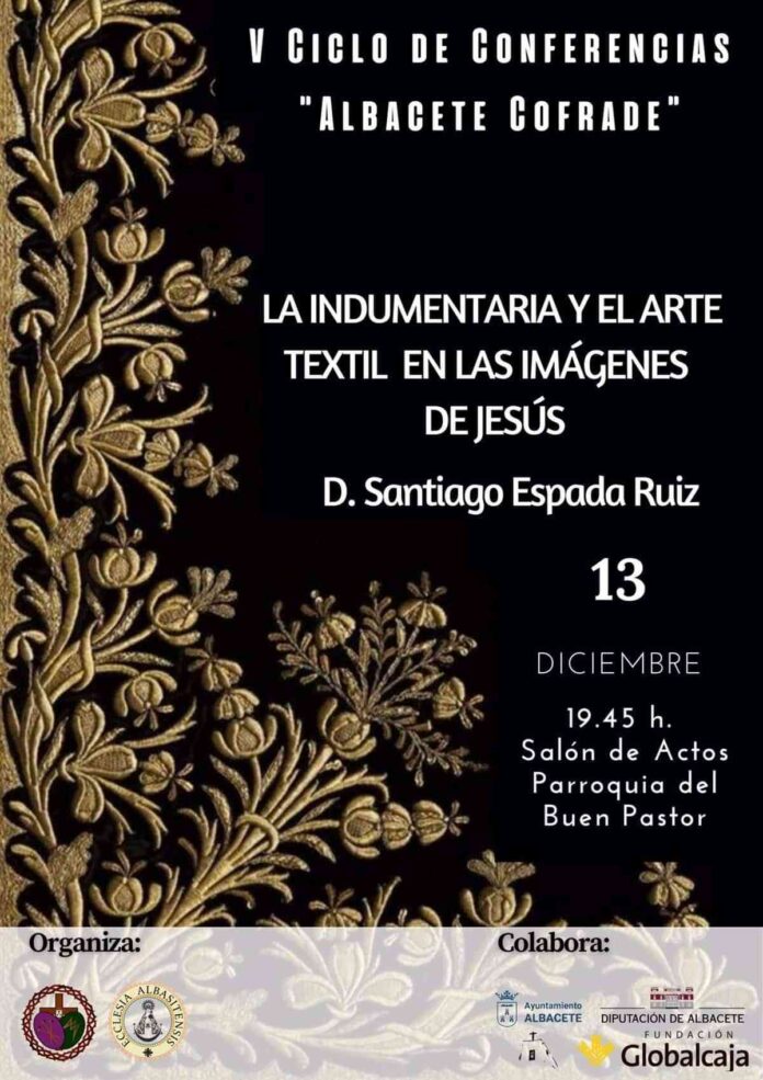El historiador del arte Santiago Espada Ruiz será el encargado de pronunciar la conferencia ‘La indumentaria y el arte textil en las imágenes de Jesús’ en el marco del Ciclo de Conferencias ‘Albacete Cofrade’, este martes, 13 de diciembre, a las 19.45 horas en el Salón de Actos de la Parroquia del Buen Pastor de la capital.