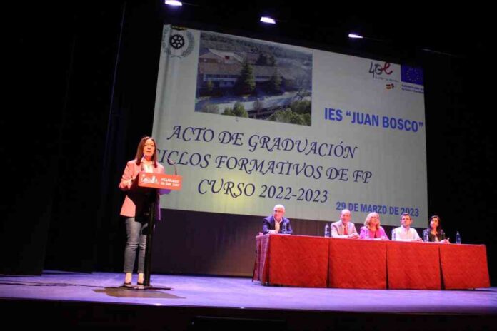 En este sentido, Carmen Olmedo anunció la formalización del contrato con la empresa constructora por lo que el inicio de las obras está cada vez más cerca. Olmedo se mostró emocionada por haber sido elegida madrina de la última promoción de estudiantes de Formación Profesional “unos estudios que han tenido un impulso muy importante por parte del gobierno de Castilla-La Mancha”. Se refería así al III Plan de Formación Profesional que desde su puesta en marcha en 2018 ha contado con una inversión de 1.200 millones de euros, ha incrementado la oferta formativa de 818 a cerca de mil ciclos formativos así como el incremento del 27% del número de alumnos.