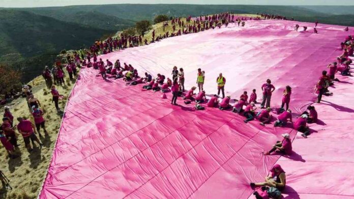 El lazo en apoyo a la lucha contra el cáncer de mama en la cima de las Tetas de Viana, dos montañas gemelas situadas en la Alcarria de Guadalajara, se ha alzado con el Récord Guinness con sus 5.720 m2 de tela en defensa de la vida y en apoyo de la lucha contra el cáncer de mama.