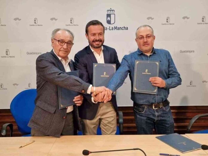 El consejero de Desarrollo Sostenible, José Luis Escudero, firmó este viernes dos acuerdos de colaboración con los alcaldes de los municipios de Riba de Saelices y Caspueñas para la creación de nuevos centros de información y atención para visitantes en la provincia de Guadalajara. Con estos dos nuevos puntos, la provincia contará con un total de 15 centros, ocho en el Parque Natural del Alto Tajo, cuatro en el Parque Natural de la Sierra Norte, dos en el Parque Natural del Barranco del Río Dulce, y uno en el Paisaje protegido del Río Ungria.