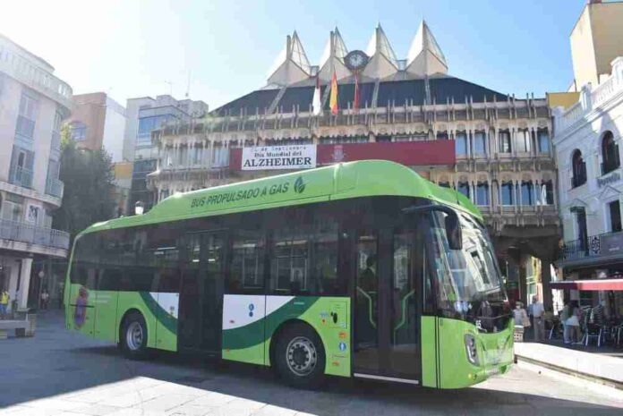 Esta mañana el Ayuntamiento de Ciudad Real y la empresa IBERCONSA presentaban en la Plaza Mayor de Ciudad Real un nuevo autobús interurbano, que hará el trayecto de la línea seis, que une las pedanías de Las Casas y Valverde con el centro de la capital. Este nuevo autobús tiene una potencia de 320 caballos de potencia y está propulsado por GNC, con lo que la reducción de monóxido de carbono es cinco veces superior, además disminuye el dióxido de nitrógeno un 75 por ciento más que los que había anteriormente.