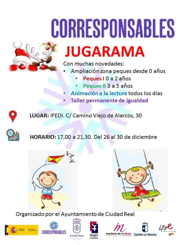 Explicaba la concejala que, junto a la Concejalía de Juventud e Infancia, este año, el Plan Corresponsables estará presente en Jugarama, que este año se celebra en IFEDI (Pabellón Ferial de Ciudad Real) en el Camino Viejo de Alarcos, 30, en horario de 17.00 a 21.30 horas, entre los días 26 y 30 de diciembre. Entre las novedades habrá “una ampliación de la zona para los más pequeños, hasta los 2 años (bebeteca) y otra zona para los niños y las niñas con edades comprendidas entre los tres y los cinco años. También habrá animación a la lectura todos los días y un taller permanente de igualdad.