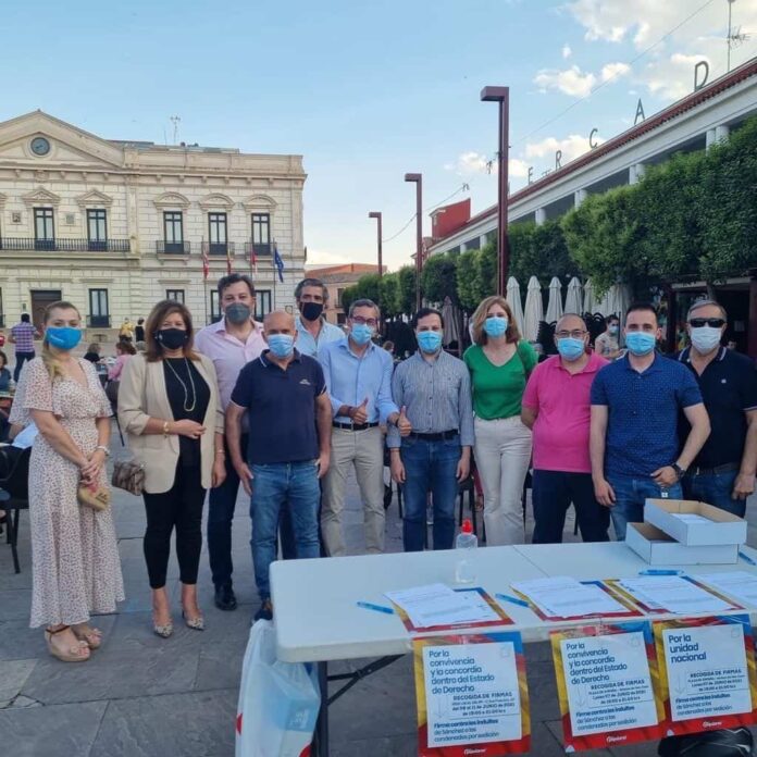 El Partido Popular de Alcázar de San Juan (Ciudad Rea) ha salido a la Plaza de España de la ciudad manchega para la recogida de firmas contra los indultos que el presidente del gobierno Pedro Sánchez se ha planteado realizar sobre los doce presos que han sido condenados por el Tribunal Supremo en el conocido caso del ‘procés’.