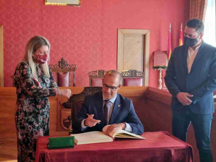 En el marco de su visita a Tomelloso, el presidente de la asamblea autonómica ha visitado el Consistorio, firmando en el libro de honor, para más tarde desplazarse aconocer las instalaciones de la Cooperativa Virgen de las Viñas, la cooperativa vitivinícola más grande del mundo.