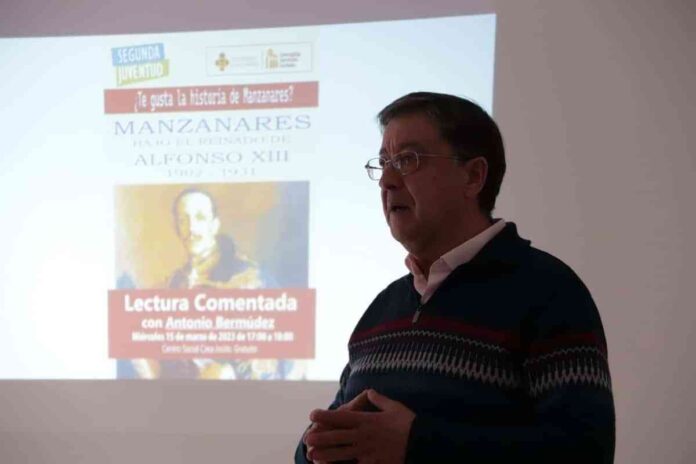 El historiador manzanareño Antonio Bermúdez es el encargado de impartir este taller, que se desarrollará en sesiones semanales hasta el próximo mes de junio. Cada una se divide en dos partes: la primera está dedicada a la lectura de uno de sus libros y la segunda al debate entre los participantes. La sesión inicial llevó por título ‘Manzanares bajo el reinado de Alfonso XIII (1902-1931)’.