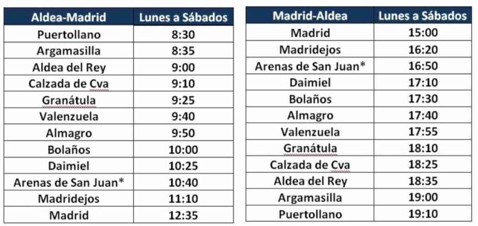 Nuevo horario autobuses Aisa Puertollano Madrid
