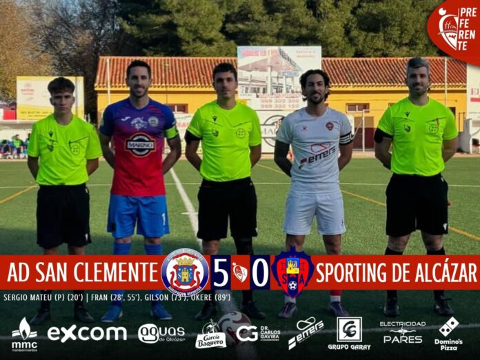 La inferioridad numérica afectó severamente al Sporting de Alcázar, que, pese a sus esfuerzos, vio cómo el San Clemente dominaba con comodidad. Francisco Benito aumentó la ventaja al 28’, y ya en la segunda mitad, Francisco Tomás, Gilson y Martín Okere sentenciaron el encuentro con un contundente 5-0.