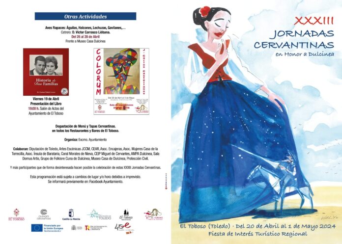 El Toboso está extendiendo una cálida invitación a todos los amantes de la literatura y la cultura para que participen en sus jornadas, que han sido declaradas de Interés Turístico Regional. Este evento cultural y turístico de gran importancia se realizará hasta el miércoles 1 de mayo, habiendo comenzado oficialmente el pasado sábado 20 de abril con la inauguración de la exposición “Colorum” de J. Carlos Castellanos en la Sala Domus Artis.
