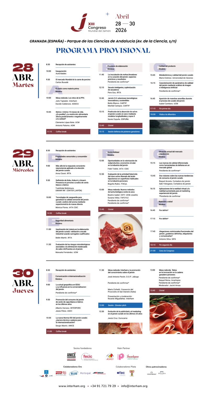 El XIII Congreso Mundial del Jamón tiene como objetivo no solo ampliar el diálogo sobre el presente y futuro del sector, sino también reafirmar a Granada como una sede mundial de encuentros estratégicos y científicos. Las inscripciones ya están abiertas, ofreciendo un 15% de descuento por pronto pago hasta el 2 de febrero.