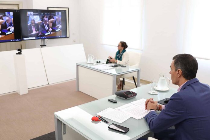 El presidente del Gobierno, Pedro Sánchez, ha participado en una videoconferencia con el secretario general de Naciones Unidas, António Guterres, y líderes de diferentes naciones para preparar la Cuarta Conferencia Internacional de Financiación para el Desarrollo, que se celebrará en Sevilla del 30 de junio al 3 de julio.