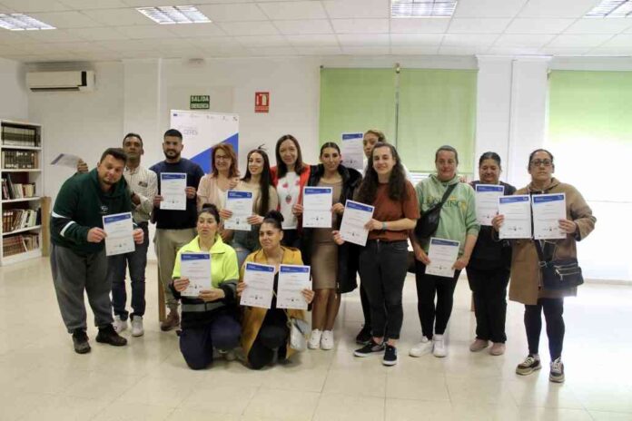 La alcaldesa de Alcázar de San Juan, Rosa Melchor, junto a la concejala de Servicios Sociales, Patricia Benito, han asistido a la entrega de diplomas del Curso de Competencias Digitales que han finalizado con éxito 16 alumnos y alumnas.