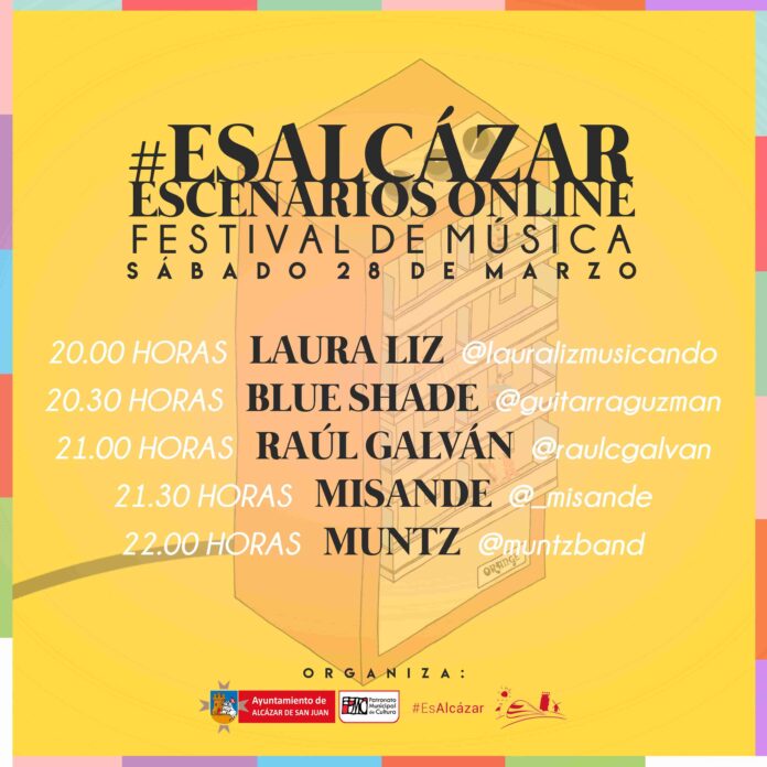 El sábado, 28 de marzo, a partir de las 20 horas y, a través de los perfiles en Instagram de los y la artista participantes, se podrá disfrutar en directo del primer Festival de Música “EsAlcázar Escenarios On Line” que contará con Laura Liz, Blue Shade, Raúl Galván, Misande y Muntz, De Alcázar de San Juan, todos han valorado positivamente este proyecto y se volcarán en ofrecer lo mejor de su música para ayudar a sobrellevar momentos tan difíciles.