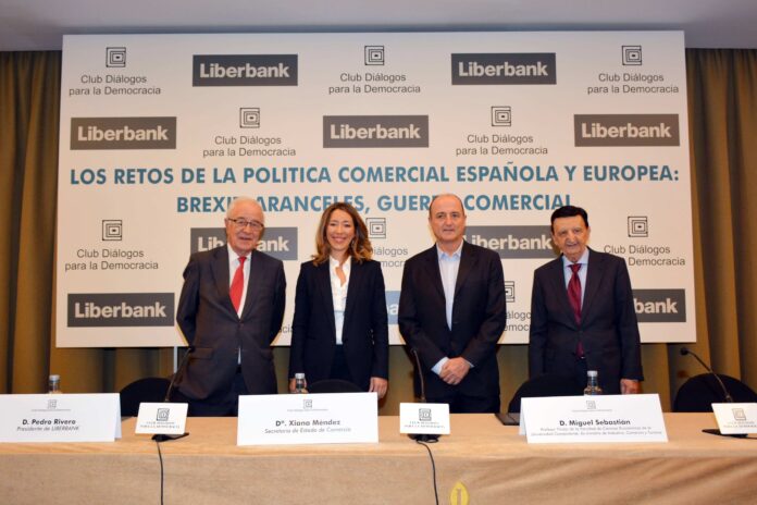 El Club Diálogos para la Democracia y su presidente, Antonio Gavilanes Dumont, han organizado, con el patrocinio de Liberbank, un Desayuno Informativo sobre “Los Retos de la Política Comercial Española y Europea: Brexit, Aranceles, Guerra Comercial” que ha contado con la presencia de la secretaria de Estado de Comercio, Xiana Méndez.
