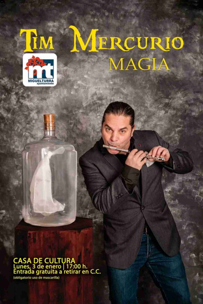 Amantes de la magia podrán disfrutar del espectáculo de magia de “Tim Mercurio” cuando llegue enero de 2022. Otra de las actividades de la programación navideña de Miguelturra (Ciudad Real).
