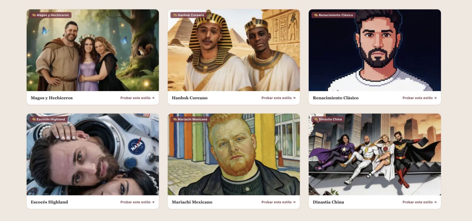 Además, GenPic no se limita a crear retratos individuales; su versatilidad abarca fotos familiares, imágenes de parejas, fotos de grupos de amigos y composiciones más profesionales, ideales para redes como LinkedIn. Con 73 estilos diferentes disponibles, que van desde el Renacimiento hasta la mitología griega y el folk mexicano, los usuarios pueden reinterpretar sus fotos de diversas maneras, ya sea para decoración, regalos o simplemente entretenimiento visual.