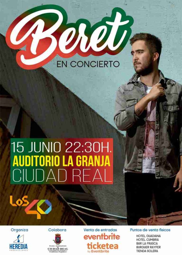 Desde este martes, 30 de abril, estarán disponibles las entradas físicas en los puntos de venta para el concierto que el cantante sevillano Beret ofrecerá en Ciudad Real el próximo 15 de junio a las 22:30 horas en el Auditorio de La Granja.