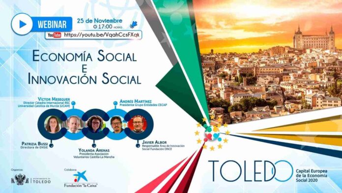 El Ayuntamiento de Toledo impulsa y participa con la colaboración de la Caixa y con motivo de la Capital Europea de la Economía Social en una serie de encuentros digitales o webinars que se podrán seguir en el canal de YouTube de la Escuela de Desarrollo e Innovación Social del Grupo de Entidades CECAP. La próxima cita será este miércoles, 25 de noviembre, y continuará con una nueva sesión el próximo 10 de diciembre.