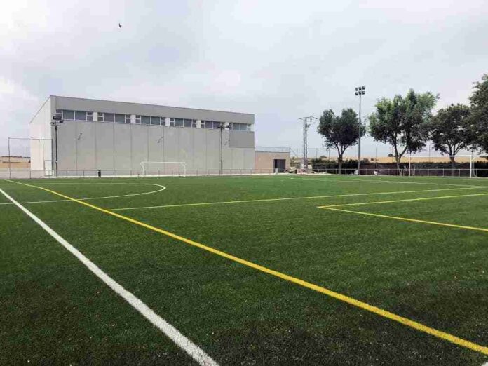 En el anterior campo de fútbol de tierra se ha instalado césped artificial de alta generación, que está homologado para jugar en 2º A, con el certificado FIFA ‘quality pro’. Este campo permite la práctica de futbol 11, y a su vez servirá en sentido transversal para dos campos de futbol 7.