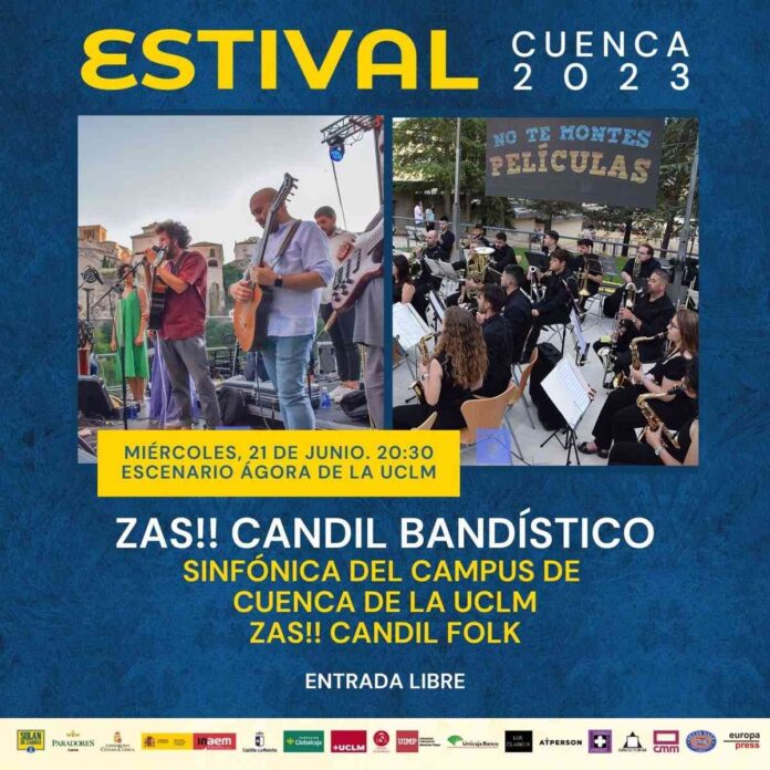 La Banda Sinfónica del Campus de Cuenca de la Universidad de Castilla-La Mancha, dirigida por Miriam Castellanos, tendrá la oportunidad de protagonizar por segunda vez un recital en el festival internacional de música Estival Cuenca. En esta ocasión, se unirán a Zas! Candil Folk el miércoles 21 de junio de 2023, para ofrecer un recital especial de acceso libre hasta completar aforo en el ágora de la UCLM de Cuenca, llamado Zas! Candil Bandístico y patrocinado por el Patronato Universitario Gil de Albornoz y el Vicerrectorado de Cultura y Extensión Universitaria de la UCLM.