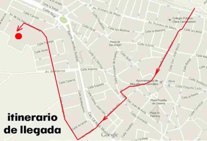 Camino de las Minas, Puente de San Isidro, Ramón y Cajal, Plaza de la Constitución (Por delante de la puerta principal de la iglesia), Don Miguel Astilleros, Cristo, San Juan de Ávila, Pardillo, avenida del Pardillo, Amelgares, avenida de los Descubrimientos y entrada al Estadio Municipal.