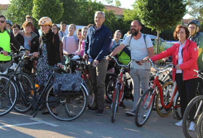 «Seguimos construyendo una ciudad sostenible, algo que no es sólo responsabilidad de las administraciones, se hace imprescindible la colaboración de toda la ciudadanía», comentó la alcaldesa alcazareña que se sumó, junto al concejal de Educación y más de un centenar de estudiantes y profesores, al paseo en bicicleta.