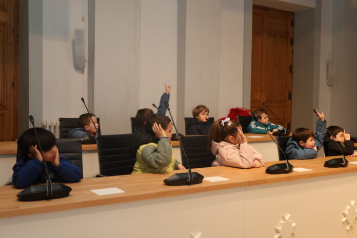 La visita comenzó en el Salón de Plenos, donde Rosa Melchor actuó como anfitriona. En un ambiente distendido y ameno, los niños y niñas se sentaron en los asientos habituales de los concejales y convirtieron el salón en un foro repleto de curiosidad. Durante su estancia, los pequeños plantearon diversas preguntas, interesándose por el camino que Melchor recorrió para llegar a ser alcaldesa, así como las tareas diarias que realiza para mejorar Alcázar de San Juan.
