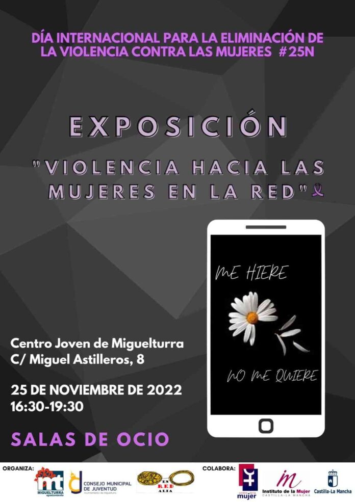 El 25 de noviembre tendrá lugar la exposición “Violencia hacia las mujeres en la red” en las Salas de Ocio del Centro Joven de Miguelturra (Ciudad Real). Y que forma parte de las actividades organizadas por el ayuntamiento de la localidad para conmemorar el 25N, Día internacional de la Eliminación de la Violencia contra la Mujer.