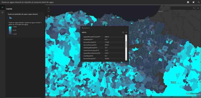 La iniciativa, accesible a través de diadelagua.esri.es, recoge diferentes aplicaciones y cuadros de mando sobre el gasto de las familias españolas en agua mineral y suministro de agua corriente. Estas aplicaciones, elaboradas a partir de datos Habits de AIS Group, muestran, entre otras, los siguientes datos: