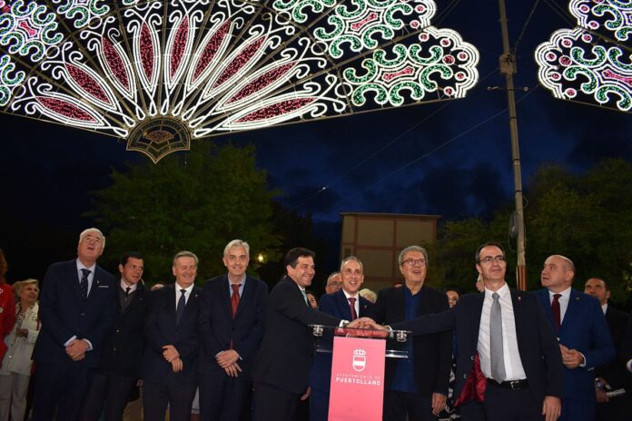 Encabezando la ceremonia de inauguración estuvieron presentes el alcalde Miguel Ángel Ruiz y el pregonero Manuel Juliá, quienes, en un acto simbólico, realizaron el corte de cinta. Les acompañaron personalidades como Miguel Ángel Valverde, presidente de la Diputación Provincial, y Juan Sebastián López Berdonces, concejal de festejos. Juntos, participaron en el encendido de las luces que adornarán el recinto ferial, mientras la AMC Banda Sinfónica de Puertollano, dirigida por José Manuel García Pozuelo, interpretaba el himno nacional.