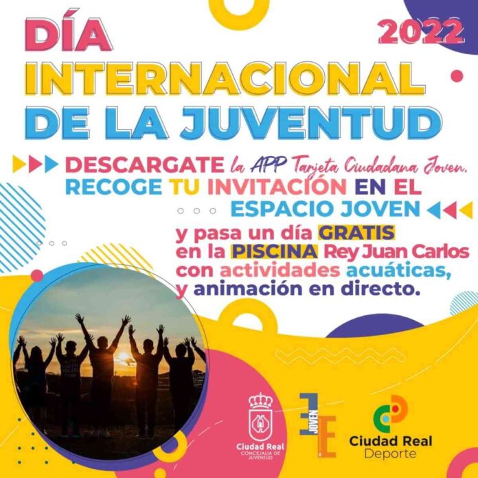 Toma nota: Descárgate la aplicación Tarjeta Ciudadana Ciudad Real. Regístrate como Tarjeta Joven. Ve al Espacio Joven, la enseñas y te llevas tu invitación gratuita. A que no hay plan más divertido para disfrutar la celebración del Día Internacional de la Juventud este 2022. Y en la piscina en Ciudad Real la pasarás en grande.