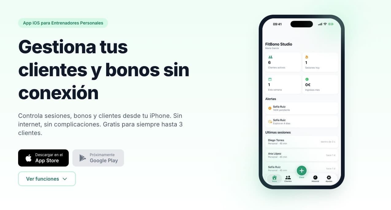 No todas las aplicaciones de fitness están diseñadas para quienes entrenan, algunas han sido creadas específicamente para aquellos que viven de ello. Este es el caso de FitBono, una innovadora app para iPhone que ofrece a los entrenadores personales una forma práctica y eficiente de gestionar el control de sus clientes, sesiones y bonos, eludiendo la dependencia de Internet y evitando herramientas complejas.