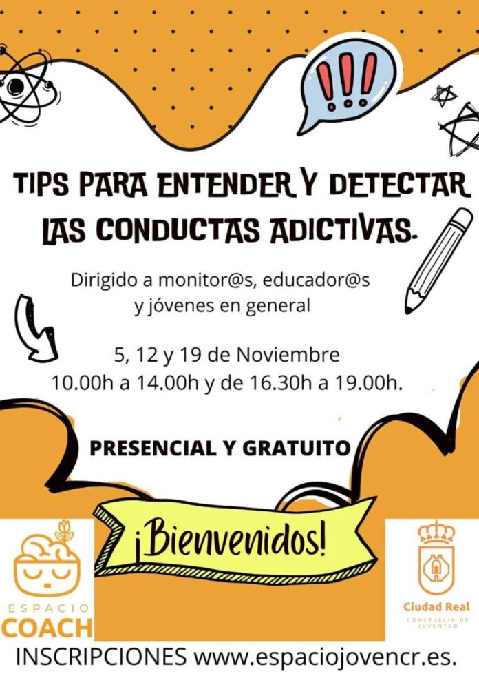 Tips para entender y detectar conductas adictivas se impartirá en el Espacio Joven de Ciudad Real con carácter presencial. Una interesante formación que sin duda aportará a todos los profesionales y los jóvenes.