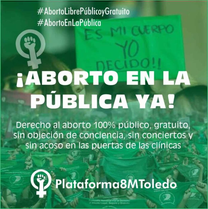 Desde la Plataforma 8M de Toledo queremos denunciar esta campaña de acoso de asociaciones antiabortistas sobre las mujeres, organizaciones que se esconden en un despreciable anonimato. Además queremos denunciar que en Castilla-La Mancha, con un gobierno del PSOE, sólo se puede abortar en dos clínicas concertadas de Albacete y Ciudad Real.