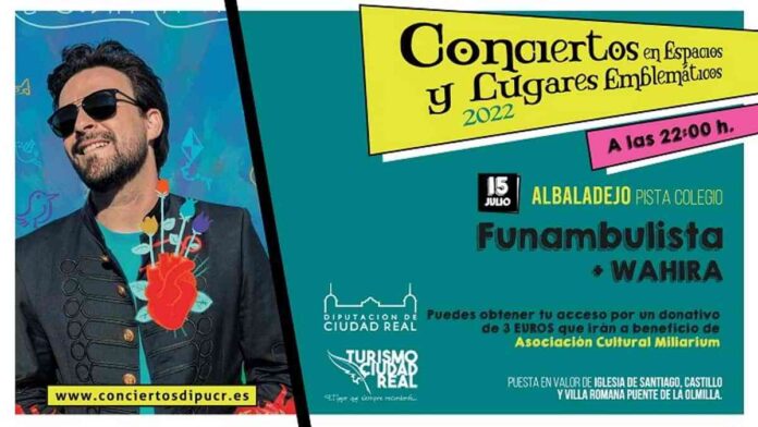 Anota la fecha, 15 de julio y el concierto de Funambulista + Wahira en Albaladejo. Otra estupenda cita musical dentro de los Conciertos en Espacios y Lugares Emblemáticos 2022 de la Diputación de Ciudad Real.