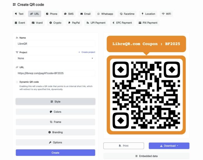 Con el aumento de la demanda por herramientas eficaces para la generación de códigos QR, Libre QR se destaca como una de las plataformas más completas y accesibles. Ofrece la posibilidad de crear códigos QR de forma gratuita o a través de planes de pago avanzados, combinando versatilidad, opciones de personalización y control de datos, lo que resulta atractivo para empresas y emprendedores que buscan mejorar su relación con los clientes a través de esta tecnología. En el marco del Black Friday, Libre QR lanza una promoción exclusiva que brinda un 30% de descuento en sus planes de pago.