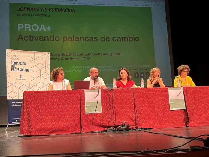 La directora general de Inclusión Educativa y Programas, Marian Marchante, ha inaugurado las jornadas ‘Activando palancas de cambio’, en las que participan más de 300 docentes pertenecientes a centros de las cinco provincias de la región, que participan en el programa PROA+. Estas jornadas, que están organizadas por el Centro Regional de Formación del Profesorado (CRFP), tienen la finalidad de enmarcar los objetivos y líneas de trabajo dentro del programa PROA+, promover planes estratégicos de mejora en los centros educativos, así como intercambiar experiencias sobre buenas prácticas educativas inclusivas. Se pretende también que sea el germen para promover, en los centros educativos, la cultura de la mejora continua. Además de esta jornada presencial se desarrollará otra online el próximo 10 de octubre. Serán impartidas por representantes de la Consejería de Educación Cultura y Deporte, del Ministerio de Educación y Formación Profesional, así como especialistas en gestión, transformación y mejora dentro del ámbito educativo