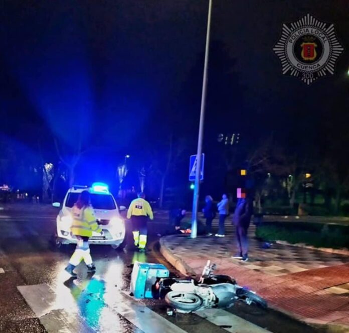 Un repartidor de 20 años resultó herido tras un accidente ocurrido en la avenida del Mediterráneo de Cuenca, donde colisionaron un ciclomotor y un turismo. El incidente tuvo lugar a las 23.59 horas del miércoles 2 de abril, de acuerdo con la información proporcionada por el servicio de emergencias 112 de Castilla-La Mancha y la Policía Local de Cuenca.