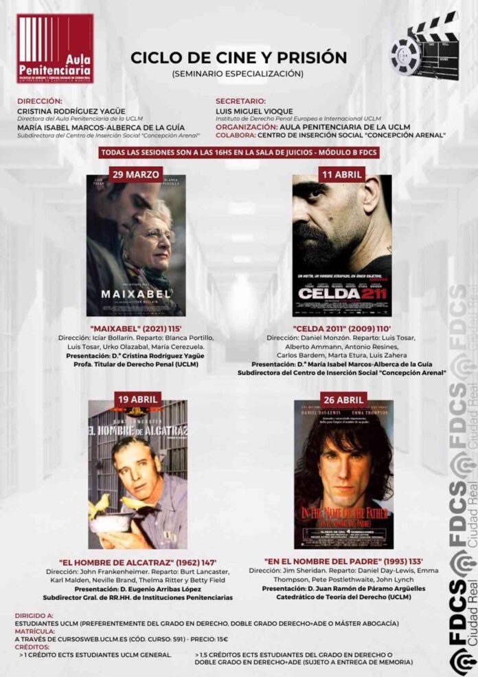 Un total de 35 estudiantes universitarios y 15 residentes del Centro de Inserción Social Concepción Arenal en Ciudad Real han participado en el primer Ciclo de Cine y Prisión organizado por el Aula Penitenciaria de la Universidad de Castilla-La Mancha (UCLM) en colaboración con el centro mencionado. En la presentación de la actividad, las directoras del ciclo, Cristina Rodríguez Yagüe, profesora y responsable del Aula Penitenciaria de la UCLM, y María Isabel Marcos-Alberca de la Guía, subdirectora del Centro de Inserción Social Concepción Arenal, destacaron la importancia del cine como herramienta educativa. El ciclo presentará cuatro películas que serán proyectadas por expertos y a las que seguirá un coloquio. La iniciativa se encuadra en las actividades que organiza el Aula Penitenciaria de la UCLM, que se creó en 2011 para fomentar el intercambio académico y docente entre la Universidad y las Instituciones Penitenciarias.