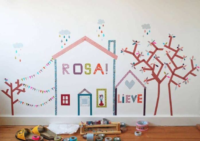 Lo mejor es elegir ideas versátiles, que puedan cambiar de un día para otro. En este sentido, decorar las habitaciones infantiles con washi tape es una gran idea. No mancha, no daña las superficies donde se pega, por lo que se retira en un momento cuando el niño (o los adultos) decidan.