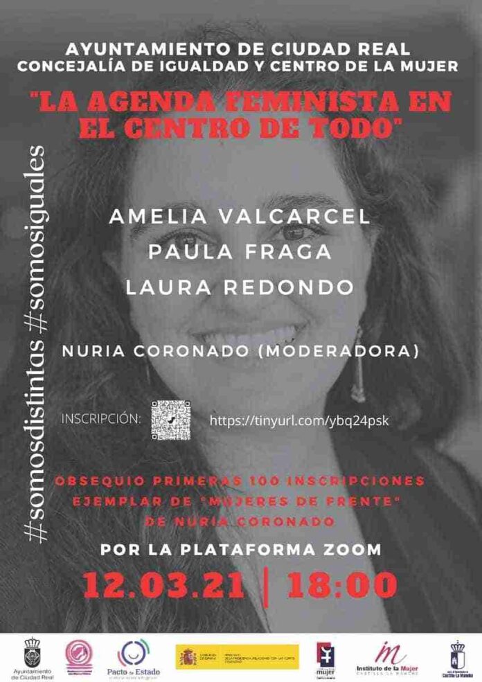 La Concejalía de Igualdad del Ayuntamiento de Ciudad Real y el Centro Local de la Mujer organizan con motivo del 8 de marzo, Día Internacional de la Mujer, una jornada sobre “La agenda feminista en el centro de todo” a cargo de Amelia Valcarcel, Paula Fraga y Laura Redondo, que estará moderada por la periodista Nuria Coronado. Será el 12 de marzo desde las 18 horas a través de la plataforma Zoom.
